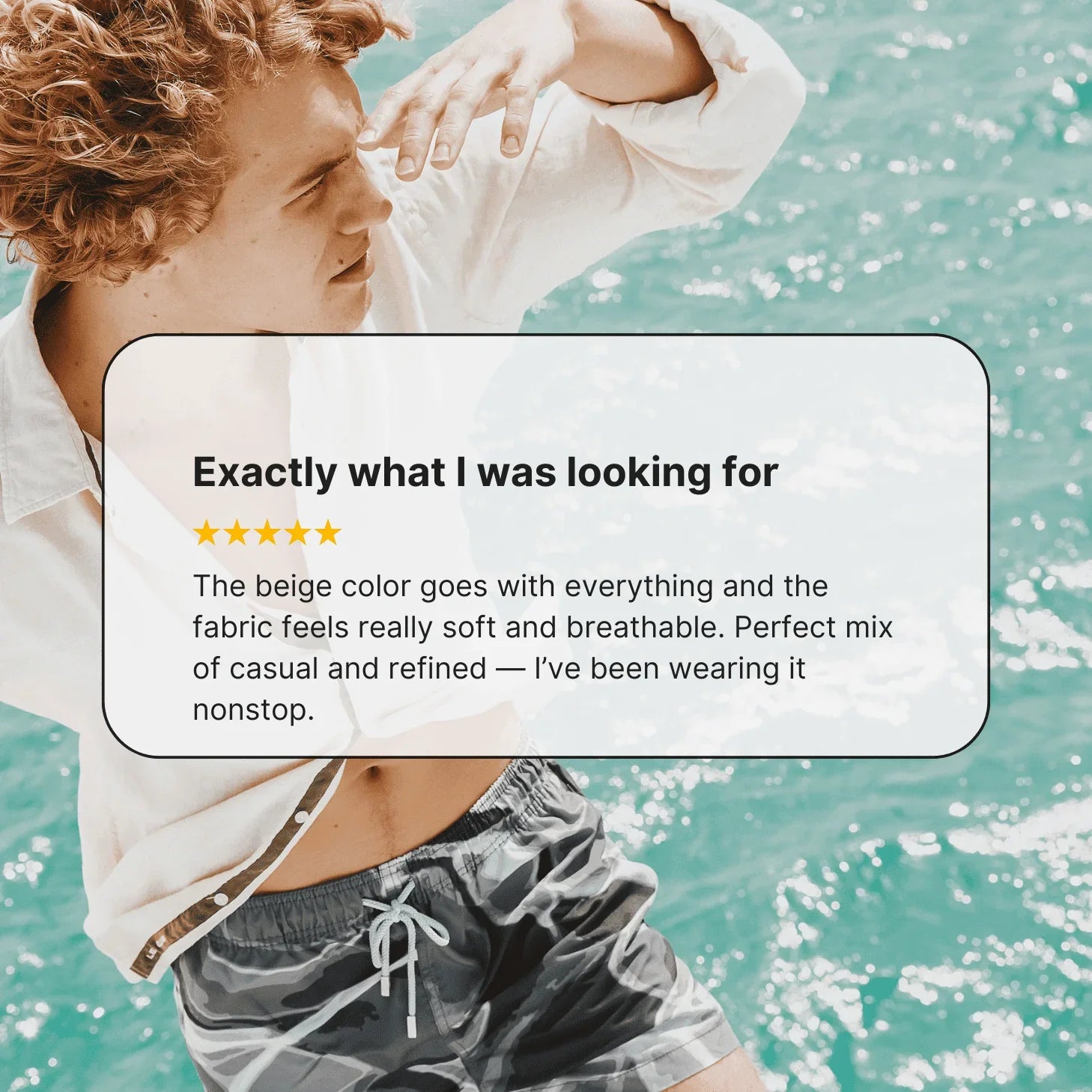Our shirts redefine resortwear — crafted from premium linen and cotton blends that breathe comfort and style. From daytime ease to evening sophistication, each piece moves effortlessly with you. Designed for life’s transitions — from the shore to the city.