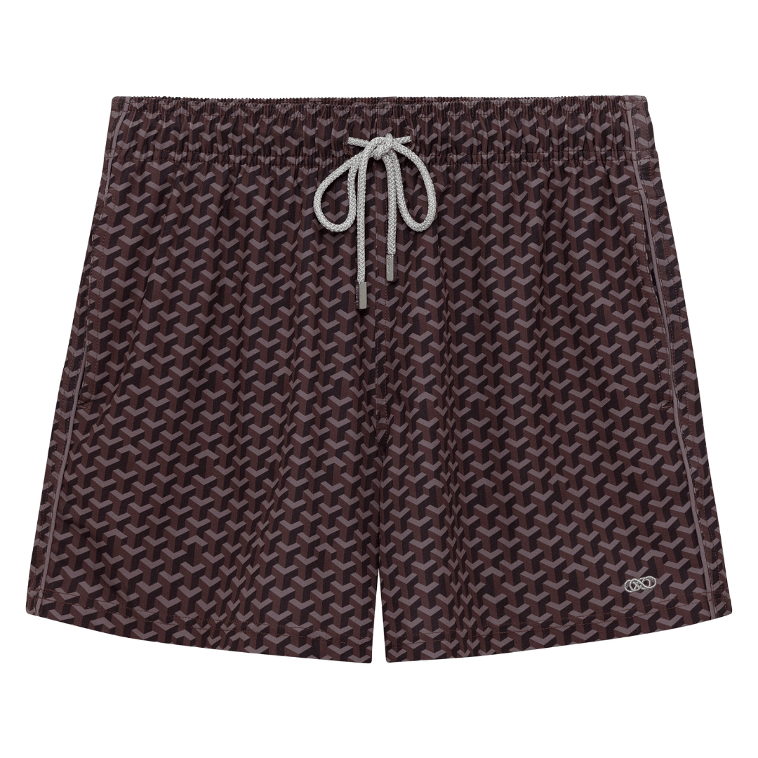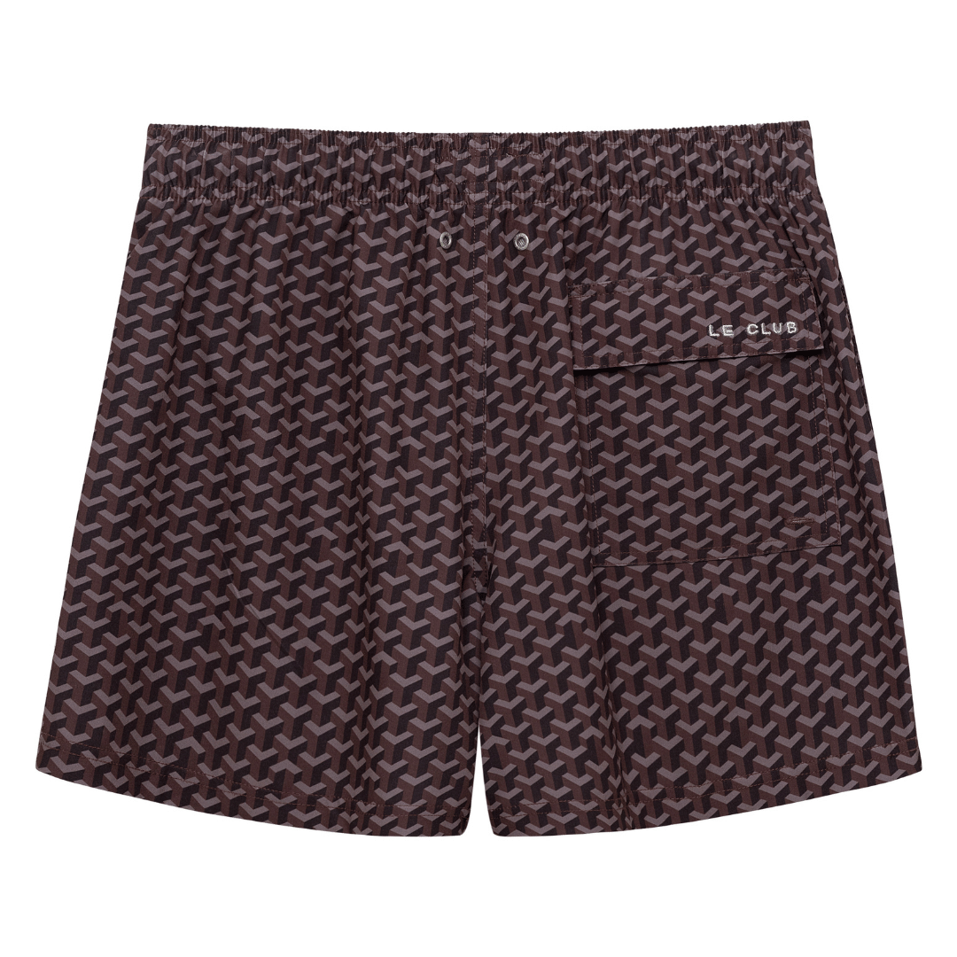 Meet the Le Club Geo Chocolate Swim Shorts — featuring a sleek, tone-on-tone motif that adds quiet texture without overwhelming the look. Effortlessly stylish and endlessly versatile.