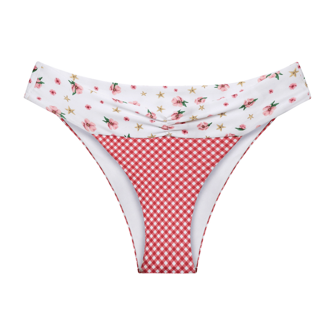 The Ruby Bottom from the La Plage collection blends sweetness with sophistication. Its charming mix of petite florals and classic gingham brings a playful, nostalgic feel, while the softly twisted waistband adds a refined, feminine touch. Designed to flatter with effortless comfort, Ruby is your go-to for sunny escapes and slow, easy days by the water.