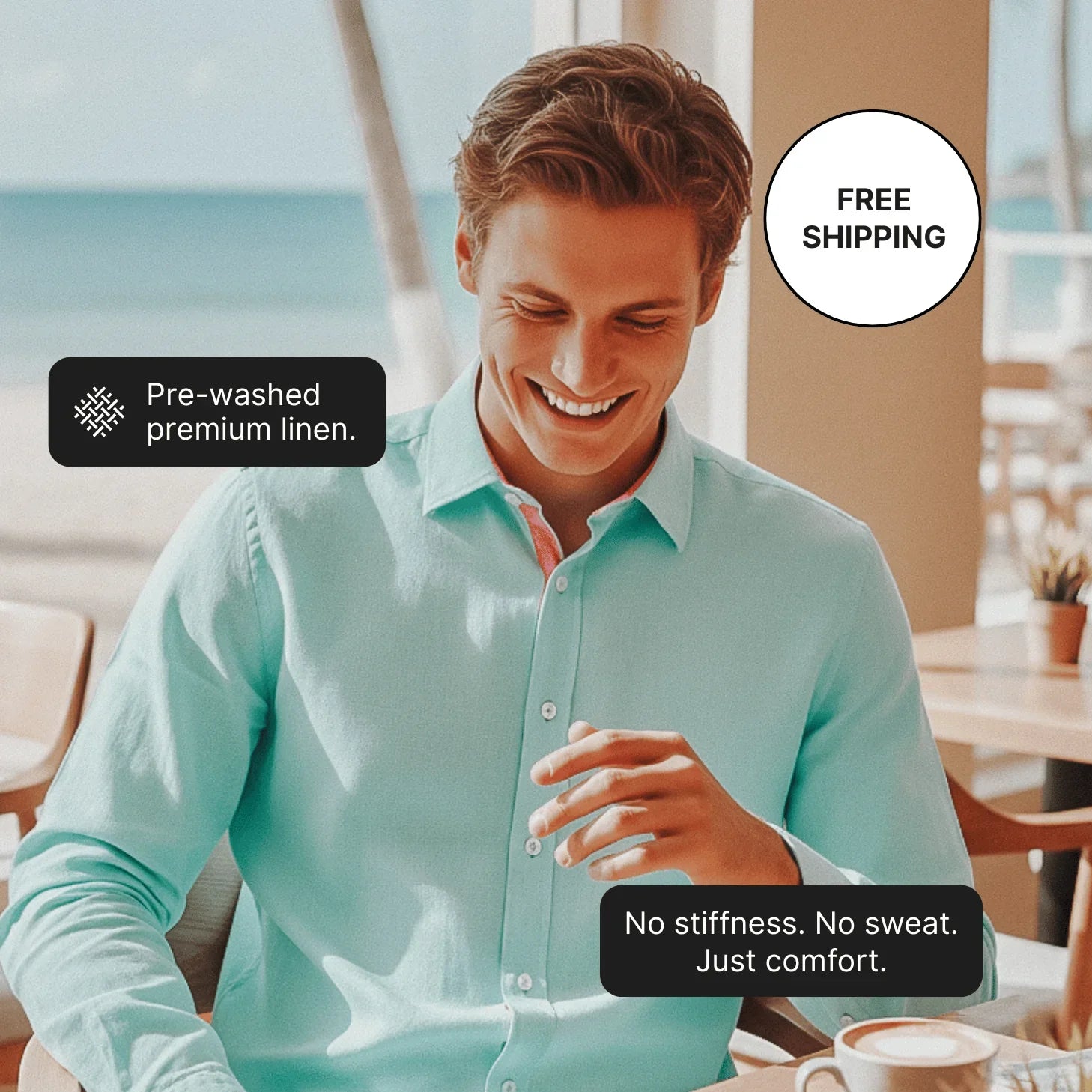 Peter Linen Shirt - Mint - Le Club Original - Mens Tops