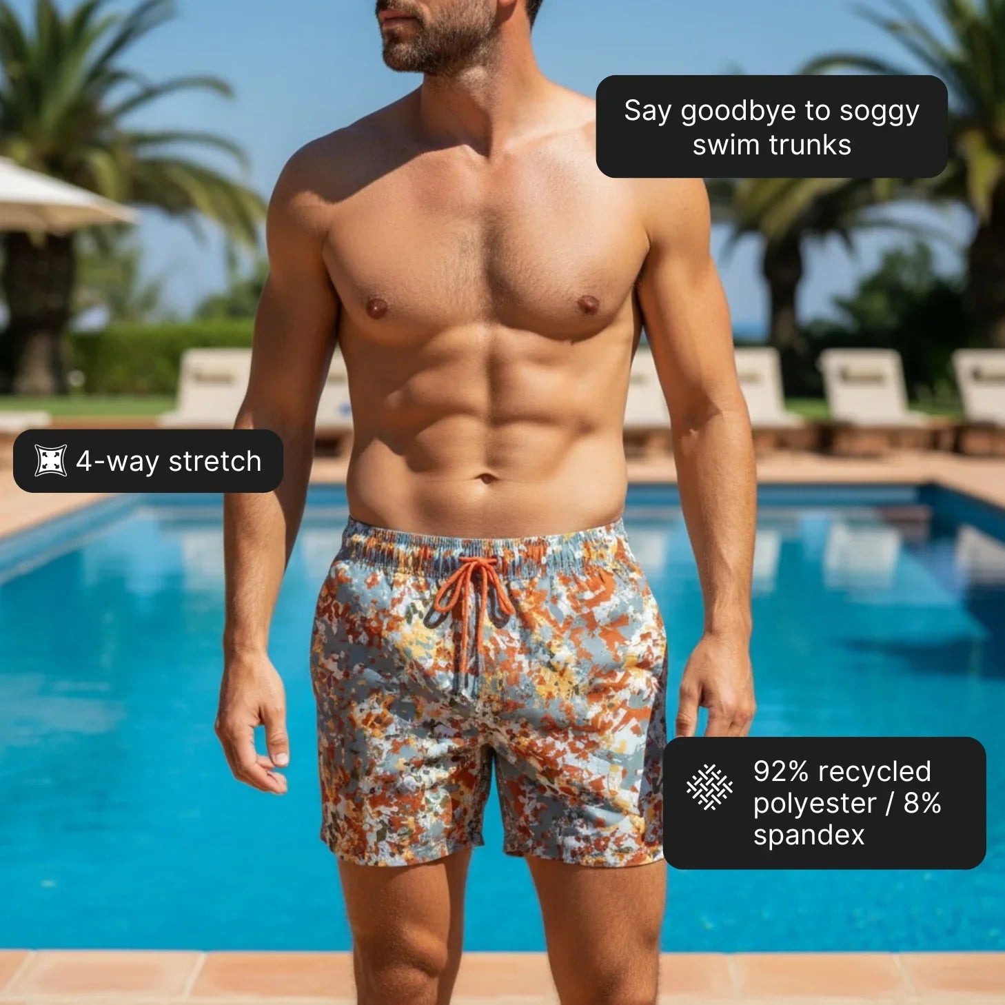 The 4-way-stretch fabric ensures lightweight, quick-drying, and durable performance, showcasing your commitment to sustainability and reducing waste. With ultimate comfort and mobility, these swim shorts allow you to move freely and confidently during various activities such as swimming, beach sports, or lounging by the pool.