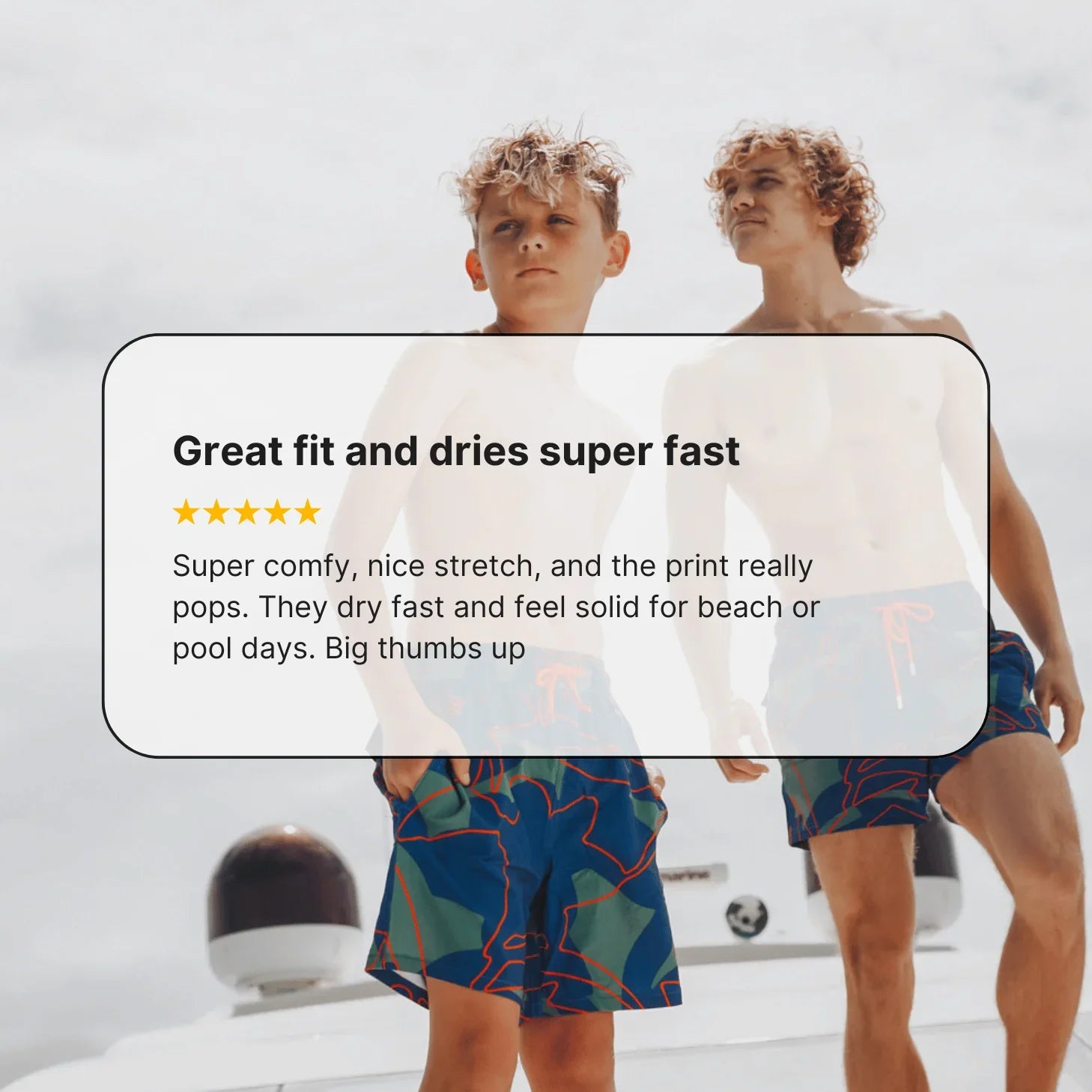 The 4-way-stretch fabric ensures lightweight, quick-drying, and durable performance, showcasing your commitment to sustainability and reducing waste. With ultimate comfort and mobility, these swim shorts allow you to move freely and confidently during various activities such as swimming, beach sports, or lounging by the pool.